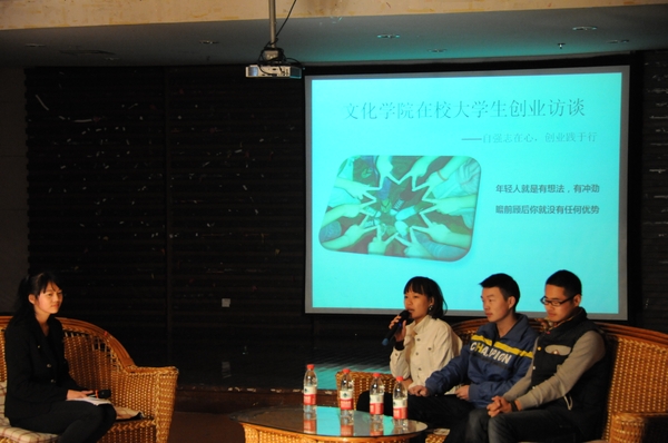 浙农林大新闻网讯 11月17日晚,文化学院在绿梦休闲吧举行在校大学生创业座谈会,花小宠植物店店长朱琼琼、临安草木人茶文化策划有限公司负责人张凌峰、临安梦博电子商务有限公司负责人张超、艺海琴行负责人冯炳权应邀参加本次访谈。