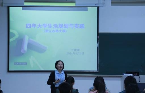 浙农林大新闻网讯 5月9日晚,由学生处就业指导服务中心主办、大学生就业实践社承办的大学生就业创业系列讲座在教1-105举行。本期讲座主题为“四年大学生活规划和实践”,主讲人为西子奥的斯电梯有限公司人力资源部经理兰根萍。