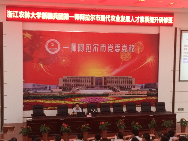 在第一师党校学术报告厅举行的“开云电竞s13新疆兵团第一师阿拉尔市现代农业发展人才素质提升研修班”开班式上,第一师分管领导、党校领导及台州援疆指挥部的领导共同参加了开班式。我校5名专家分别对来自全师各团场200余名农业科技干部进行了为期4天的专业培训。