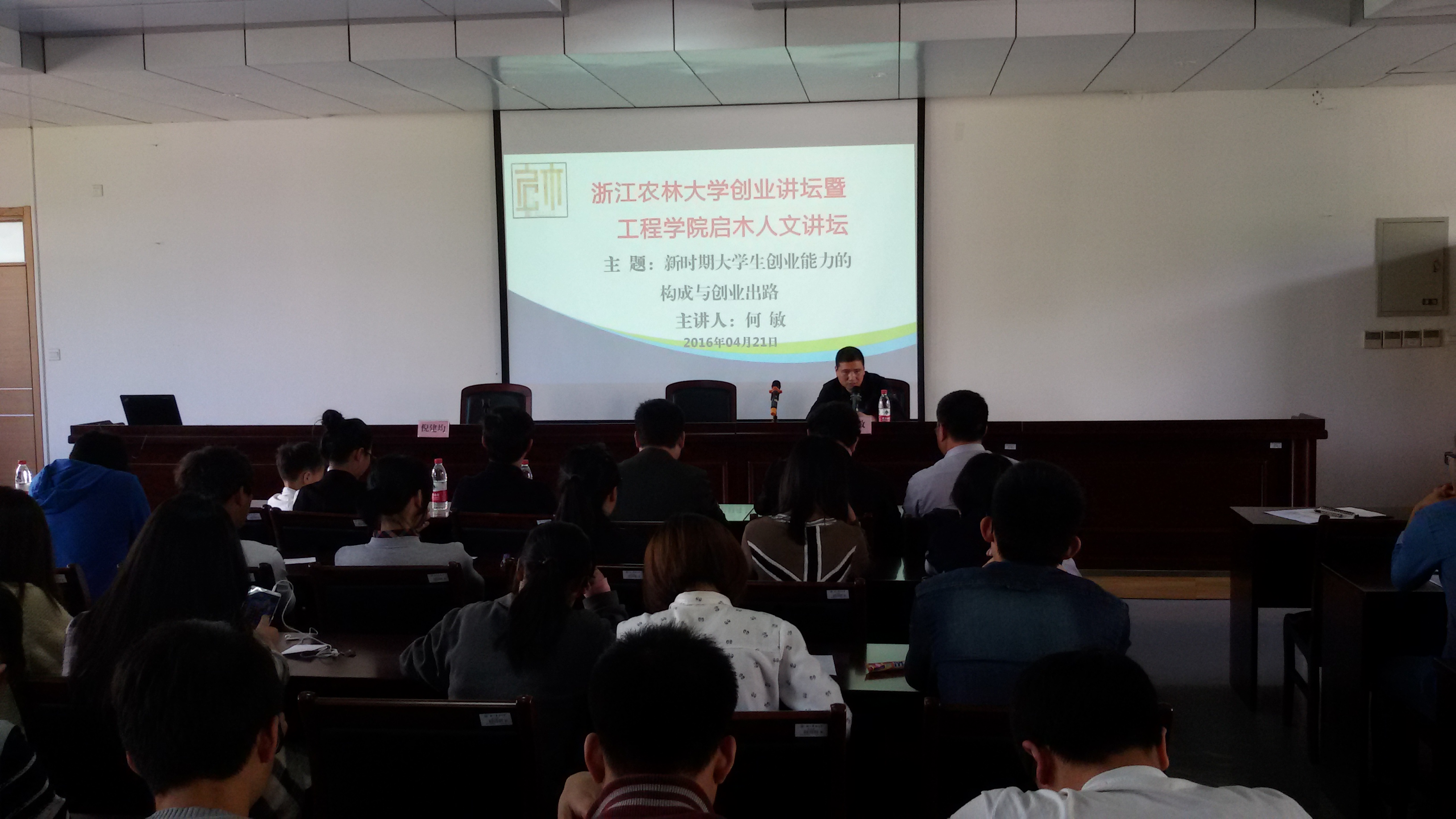 近日,我校2016年首期创业论坛在国家工程中心报告厅开讲,黄山东仁新材料股份有限公司董事长何敏应邀作报告。创业讲坛由工程学院书记倪建均主持,创业管理处处长朱永法应邀出席了讲坛,全校师生200余人聆听了何敏的精彩创业历程。