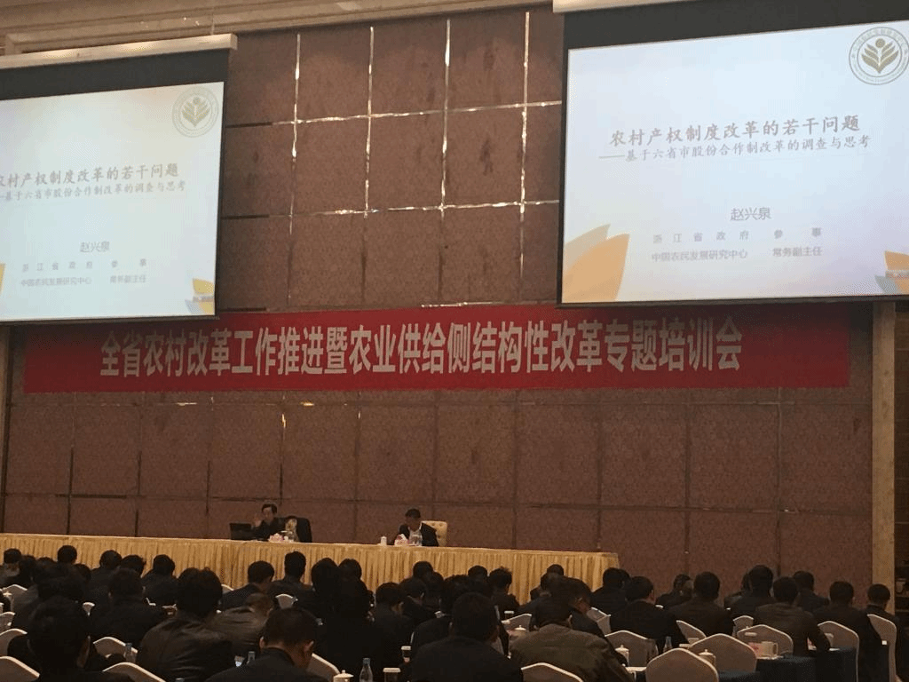 培训会上,赵兴泉基于六省市股份合作制改革的调研,围绕“农村产权制度改革的若干问题”进行了专题讲座。讲座内容涵盖了目前农村产权制度改革中的诸多热点、难点问题,如集体资产清产核资方法路径问题、发展村集体股份合作经济过程中的股权量化方法问题、活化股份权能以壮大集体经济的具体模式问题等。