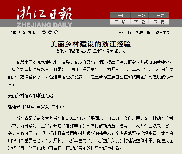 5月8日,《浙江日报》以大篇幅刊登我校中国农民发展研究中心理论文章《美丽乡村建设的浙江经验》。
