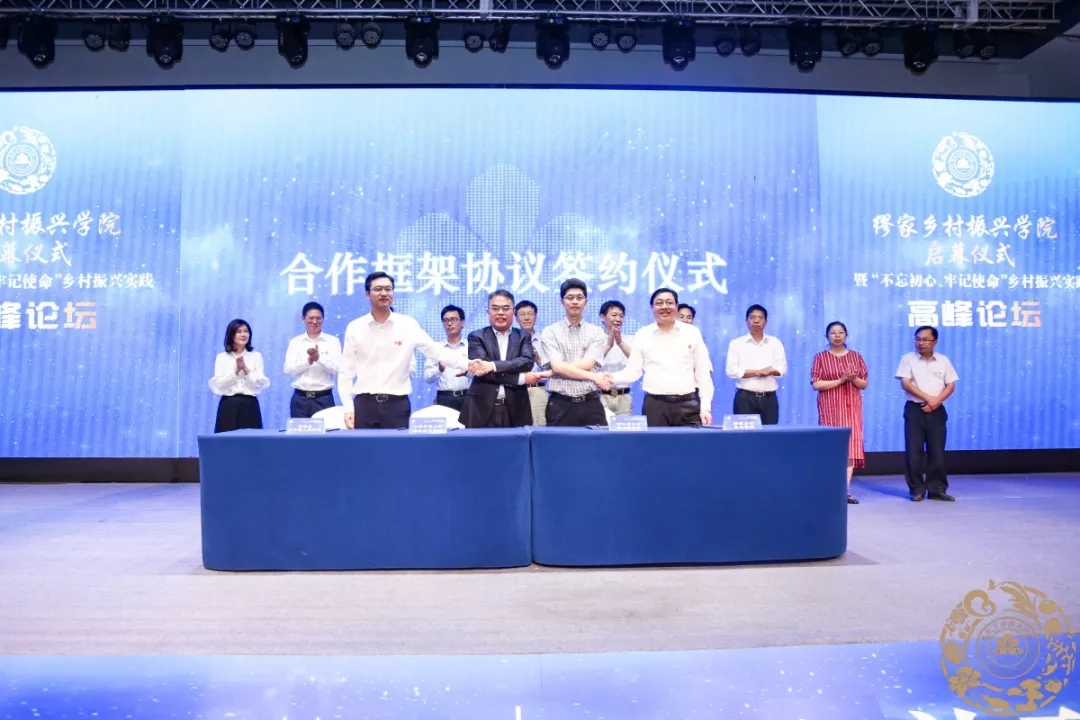 会议举行了浙江省乡村振兴研究院研究基地的挂牌仪式,潘伟光代表我院与缪家乡村振兴学院签订合作框架协议。这是我校乡村振兴研究院首次在村级层面建立研究基地,为我院全面深入研究乡村产业、文化、环境等提供了广阔的平台,为乡村振兴研究提供了案例素材。