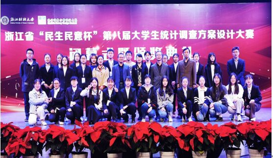 浙江省大学生统计调查方案设计大赛是由省教育厅和省统计局共同主办,旨在顺应数据化时代下应用统计技术解决社会热点问题的发展趋势,为创新人才培养模式,培养大学生调研能力、数据分析能力和处理实际问题能力。大赛以“深入实际,调研社会”为主题采用自选命题的方式,涉及内容包括调查方案设计、调查问卷设计、实地调查、数据处理、调查报告撰写等全部统计调查内容。分校内赛和省赛两个阶段,省赛分初赛和决赛答辩两个环节。
