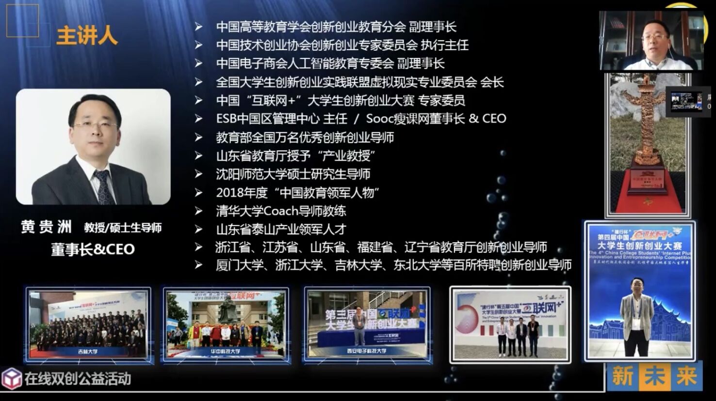 受疫情影响,校“东湖杯”创新创业大赛线下培训无法展开,但各团队对创新创业的热情依旧不减。3月9日,应校团委的推荐,我校68支“东湖杯”团队约190余名学生参加了由浙江省高校创业学院联盟发起的“在线双创公益行动”第一期线上培训讲座。本期讲座主题为商业计划书撰写及案例分析,由Sooc瘦课网董事长兼CEO黄贵洲教授主讲。