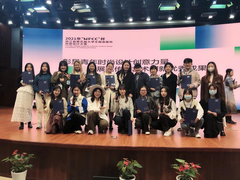 10月24日,由浙江省教育厅、浙江省大学生科技竞赛委员会、浙江省纺织工程学会、浙江省服装行业协会主办,宁波大学承办的2021年“NFCC”杯浙江省第五届大学生服装服饰创意设计大赛在宁波大学落下帷幕。艺术设计学院学子获得一等奖5项、二等奖6项、三等奖5项、优秀奖1项和院校优秀组织奖,赵漫飞、林俊文、胡燕、杨敏华、庄立锋五位老师获优秀指导教师奖。在获奖等级和数量上排名第二,同时也刷新了历届参与大赛的最好成绩。