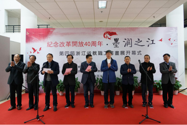 日前,“纪念改革开放四十周年·墨润之江”——第四届浙江省教职工书画展在宁波举行。我校汪士华、王康、帅宵、蒋挺、冉琰、姚芳、钱新标、黄竞人、赵科理、沈晶晶、谭福琛、翁晨晨、方飞燕等13名教职工的书画作品荣获入展奖,获奖人数居全省高校第一。我校获奖教工代表参加了展览开幕式。