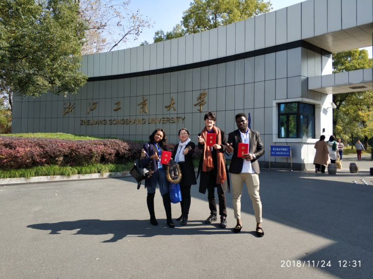 为庆祝改革开放40周年,打造“留学浙江”良好平台,11月24日,“新时代 外国学生说”浙江省高校留学生演讲比赛在浙江工商大学下沙校区举行,我院奕晓龙(喀麦隆)、李乐(喀麦隆)、丹科(塞尔维亚)代表我校国际学生参加演讲比赛并获得优胜奖。