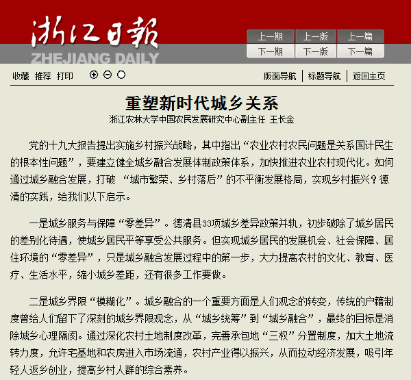 近日,《浙江日报》以大篇幅刊登我校中国农民发展研究中心副主任王长金评论文章《重塑新时代城乡关系》和法政学院教授马永双评论文章《幸福是奋斗出来的》。