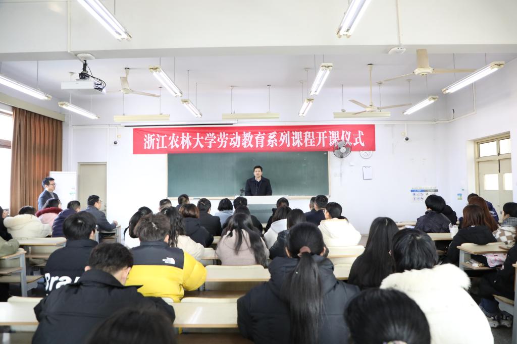 郑本军在仪式上介绍,开设劳动育人课,是党中央的要求,是总书记的号令,是当前社会现实的迫切需要。浙农林大后勤人要主动担起劳动育人的责任,要相互配合,教学相长,取得成效,让学生懂得劳动最光荣、劳动最崇高、劳动最伟大、劳动最美丽。开课仪式结束后,郑本军为同学们上了第一堂劳动育人公选课——《大学生劳动教育概论》。