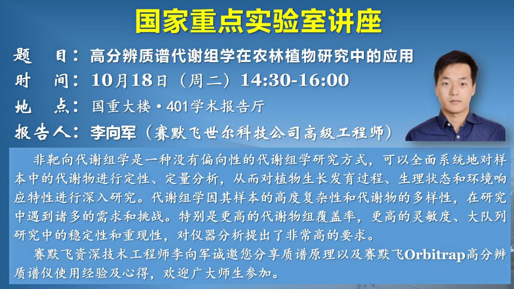 讲座预告:高分辨质谱代谢组学在农林植物研究中的应用