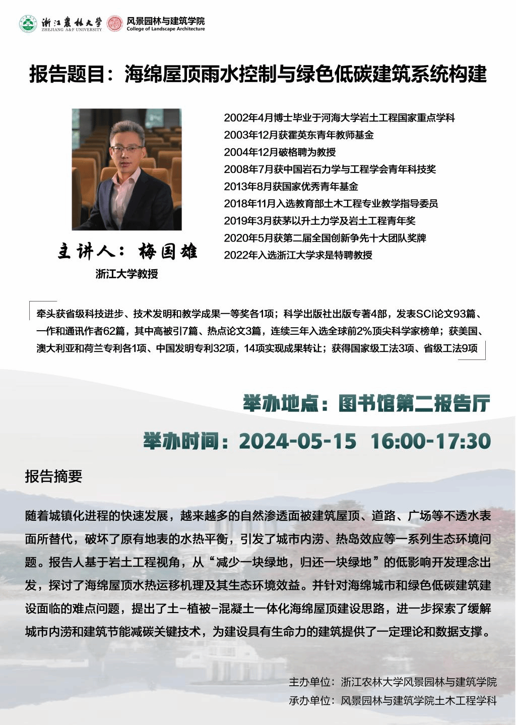 【发布日期: 2024-05-14】 【来源:风景园林与建筑学院 】 【作者:风景园林与建筑学院】 【编辑:郝璞玉】 【点击量: