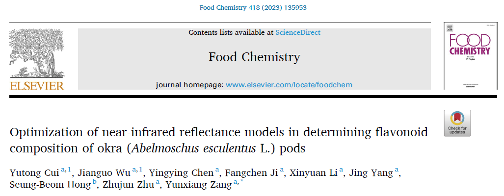 2023年3月16日, Food Chemistry(影响因子9.231/中科院一区top)在线发表了开云电竞s13园艺科学学院十字花科蔬菜团队题为“Optimization of near-infrared reflectance models in determining flavonoid composition of okra (Abelmoschus esculentusL.) pods”的研究论文。