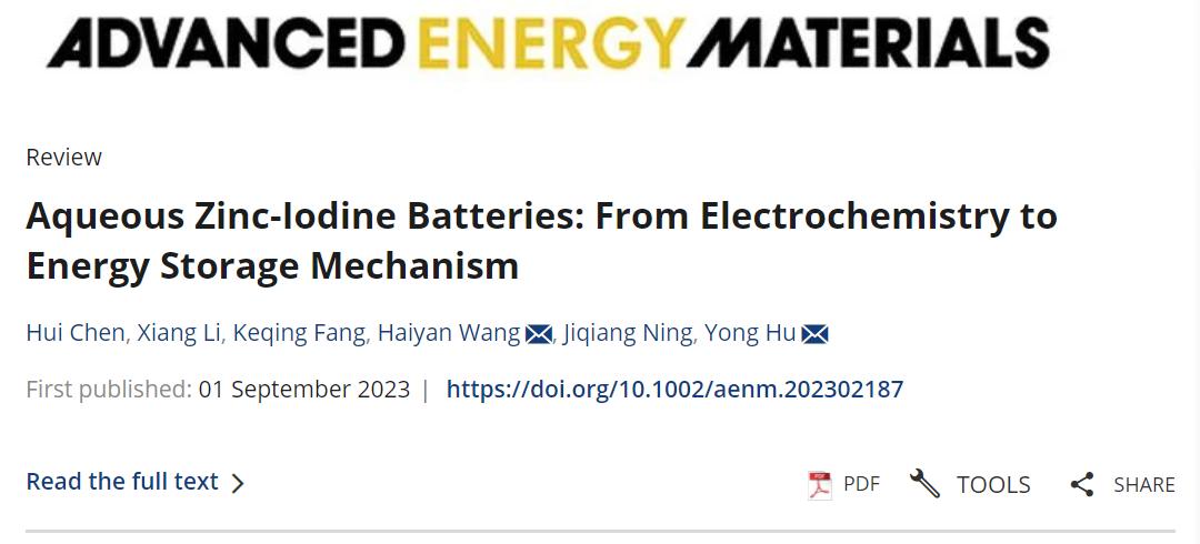 9月1日,化材学院纳米催化与能源转化研究团队(胡勇教授团队)在国际顶尖期刊《Advanced Energy Materials》(中科院1区Top,IF=27.8)在线发表题为“Aqueous Zinc-Iodine Batteries: From Electrochemistry to Energy Storage Mechanism”(水系锌基电池:从电化学到储能机制)的综述文章。