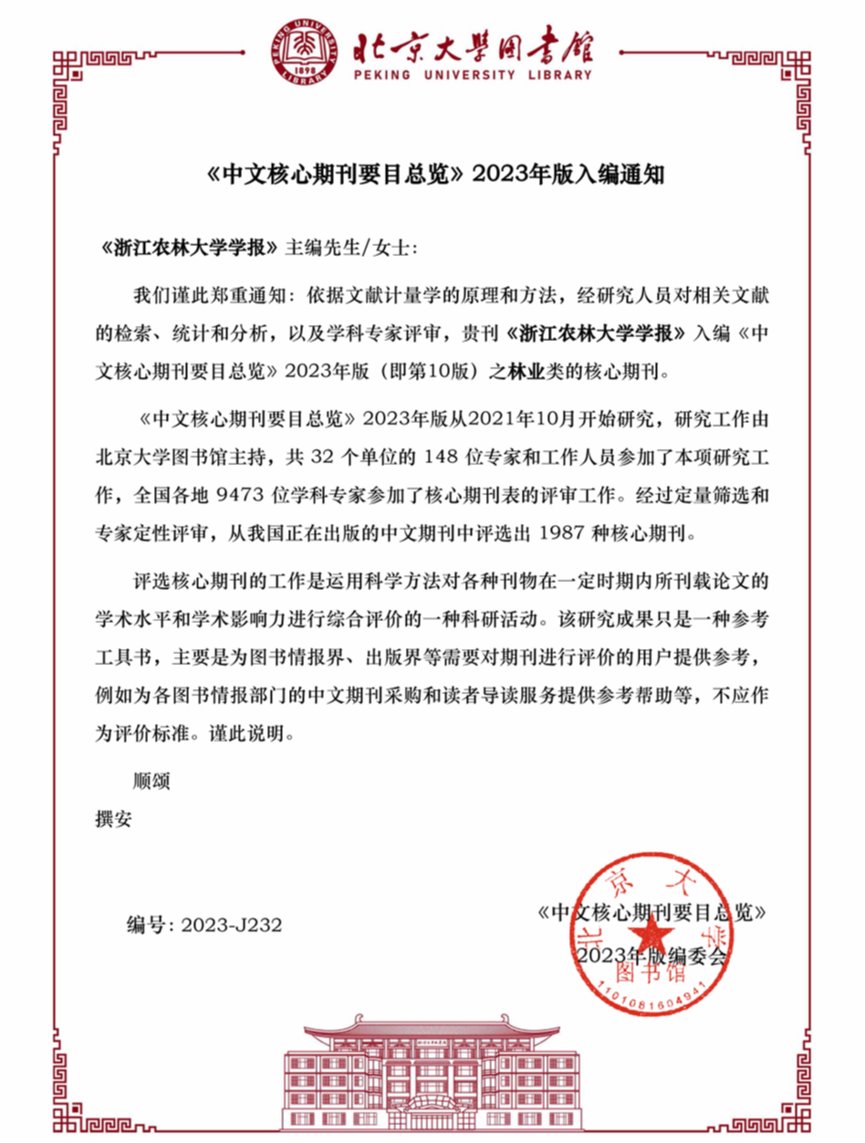 近日,《开云电竞s13学报》入编《中文核心期刊要目总览》2023年版(即第10版)之林业类的核心期刊。这是本刊连续第十次被《中文核心期刊要目总览》列为全国中文核心期刊。