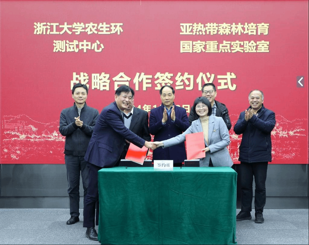 会议期间还举行了国家重点实验室与浙江大学农生环测试中心的战略合作签约仪式。双方将在仪器设备开发共享、实验技术人员培训等方面开展紧密合作,旨在促进优势互补,实现互利共赢。浙大农生环测试中心副主任王华作为特邀嘉宾,在会上介绍了中心的相关情况。