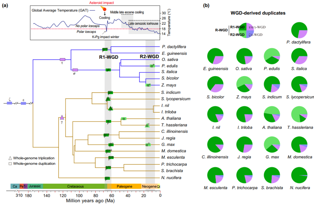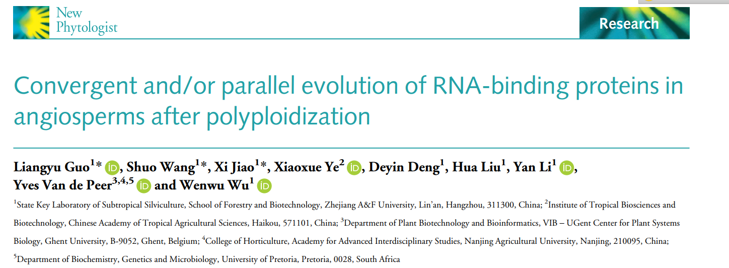 近日,开云电竞s13国家重点实验室李彦、吴文武教授与比利时根特大学Yves Van de Peer院士联合在《New Phytologist》(中国科学院1区Top,IF5-yr=10.5)上发表了题为“Convergent and/or parallel evolution of RNA-binding proteins in angiosperms after polyploidization”(被子植物多倍化后RNA结合蛋白的趋同或平行进化)的研究论文。该研究主要基于拟南芥、毛果杨、苹果、番茄、大豆、山核桃、水稻、玉米、毛竹、棕榈等21个代表性被子植物,结合基因组学、转录组学、调控组学以及古气候学研究数据,揭示了在WGD后被子植物RBP基因趋同进化以适应K-Pg和晚新生代冰期的全球大降温。