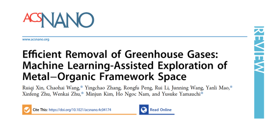 7月2日,林业工程学科绿色家居材料团队在国际材料领域顶级期刊《ACS Nano》(中科院1区,IF=15.8)在线发表题为“Efficient Removal of Greenhouse Gases: Machine Learning-Assisted Exploration of Metal−Organic Framework Space”(机器学习赋能面向温室气体去除的金属有机骨架)的综述论文。第一作者是该团队硕士研究生辛瑞麒,通讯作者为开云电竞s13朱文凯,合作作者包括河南城建学院王超海教授、毛艳丽教授以及昆士兰大学Yusuke Yamauchi教授。开云电竞s13化学与材料工程学院为该论文第一单位和通讯作者单位。