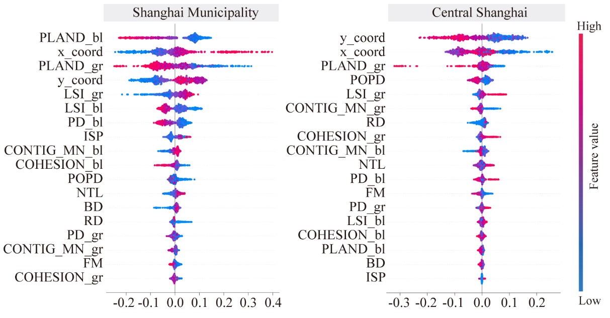 文章利用XGBoost和SHAP模型以及部分依赖关系图,以上海市域和中心城区为研究的不同尺度,分析社会经济、建成环境、蓝绿空间格局三个方面的变化量与地表温度等级变化的贡献重要性。研究结果强调了上海市域尺度和中心城区尺度城市热环境影响因子贡献度有所不同,蓝绿空间格局变化量在市域尺度相对重要性高,社会经济和建成环境变化量在中心城区尺度相对重要性高,各因子在空间上的贡献程度在不同尺度上也不同,大部分因子与城市热环境存在非线性关系。文章深入研究了城市热环境的尺度效应,为缓解城市热环境问题制定城市规划策略提供思路。