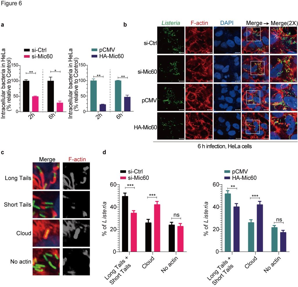论文主要发现之三:单增李斯特菌毒力因子溶血素LLO调控线粒体结构变化介导细菌在宿主内感染和迁移的生物学过程