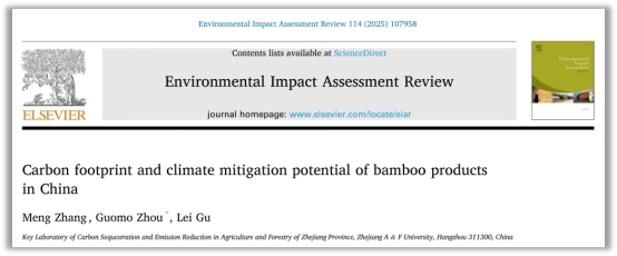 Meng Zhang, Guomo Zhou, Lei Gu,Carbon footprint and climate mitigation potential of bamboo products in China,Environmental Impact Assessment Review 114 (2025) 107958.https://doi.org/10.1016/j.eiar.2025.107958.