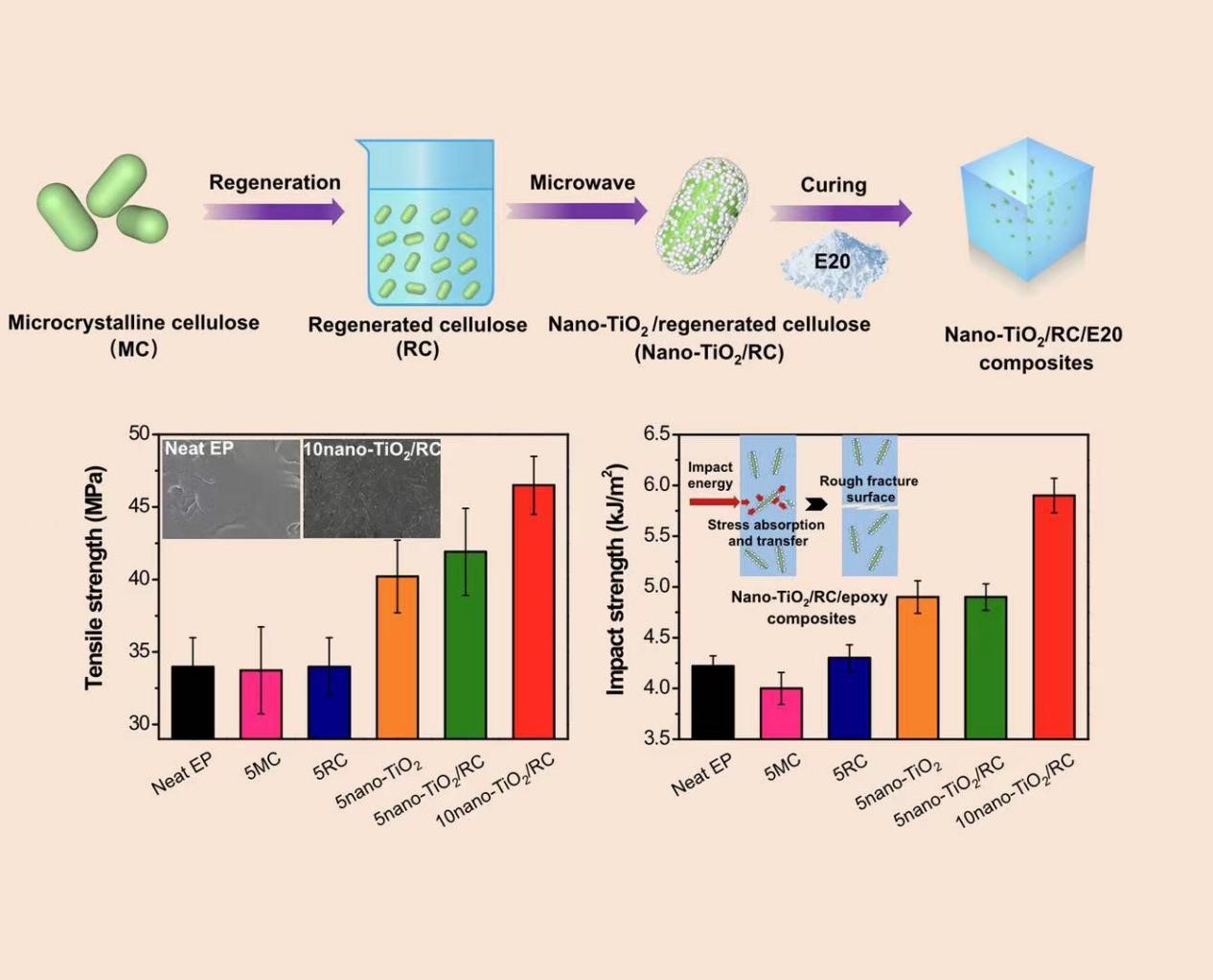 “A nano-TiO2/regenerated cellulose biohybrid enables simultaneously improved strength and toughness of solid epoxy resins”于2021年5月29日发表于复合材料领域国际期刊《Composites Science and Technology》(IF=8.525)上。第一作者为本校博士研究生杨佳瑶,指导老师为开云电竞s13傅深渊教授、刘晓欢博士和南昆士兰大学宋平安教授。