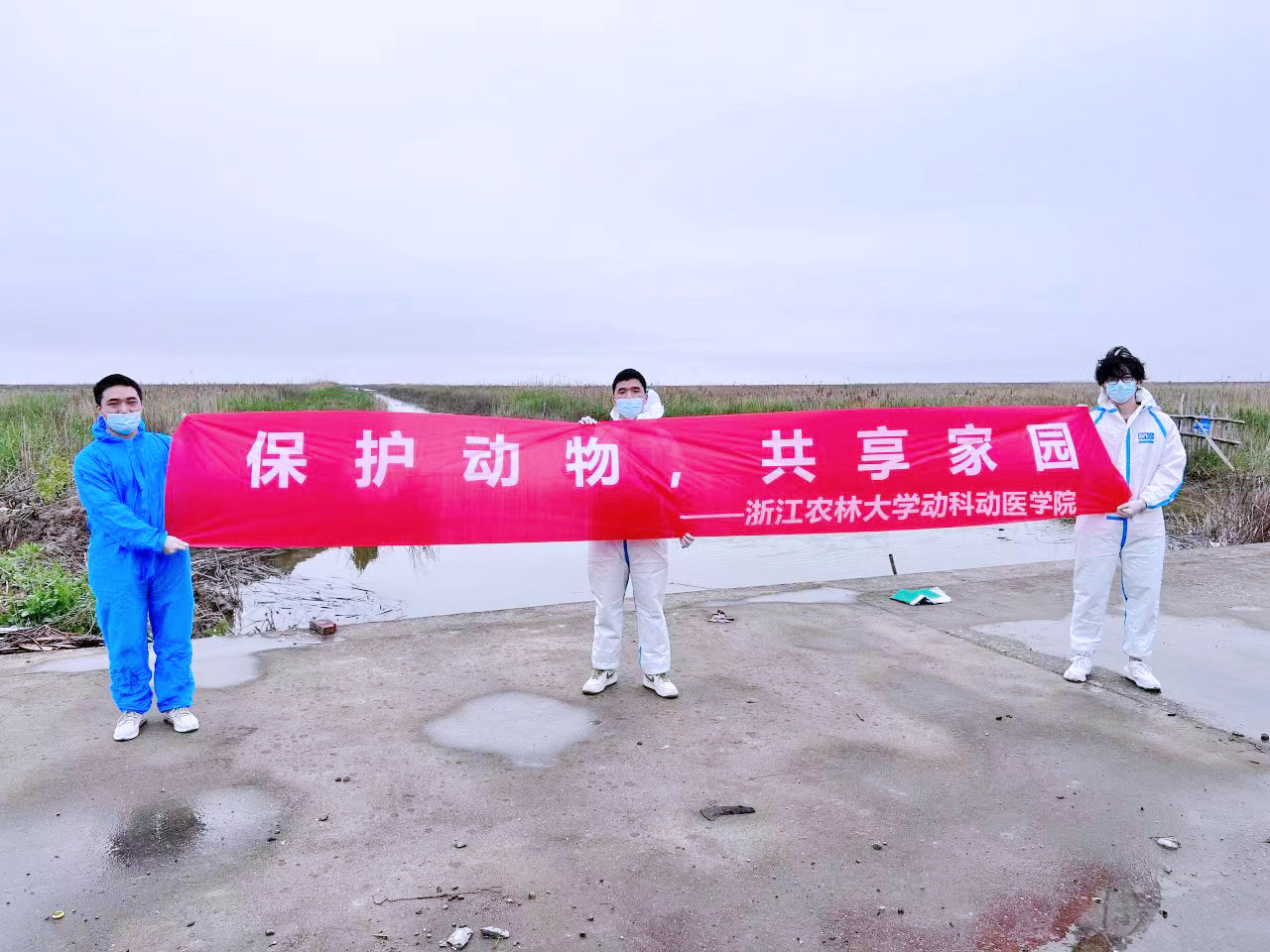 4月18日至25日,动科动医学院委派兽医学科8名师生联合浙江省森林资源监测中心,深入宁波杭州湾湿地公园和玉环漩门湾湿地公园进行了为期一周的野外环志水鸟禽流感监测工作,以实际行动积极践行党的二十大提出的“实施生物多样性保护重大工程”和习近平总书记对我校重要指示精神。