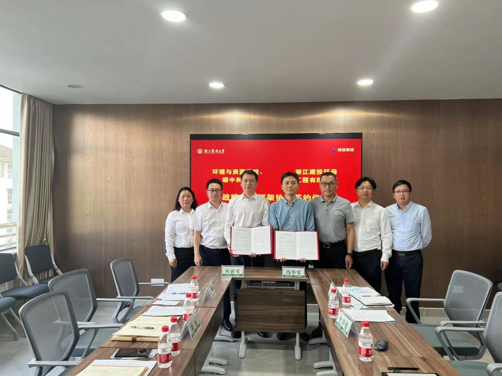 5月25日,环资院、碳中和学院与浙江建投环保工程有限公司签订战略合作框架协议。浙江建投环保工程有限公司党总支书记、董事长何新军一行,学院党政班子、各学科负责人出席签约仪式。