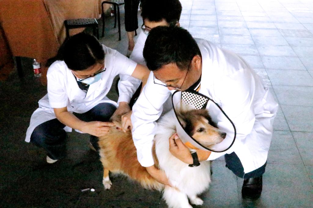 活动中,师生党员结合动物公共卫生与健康的常见问题,向市民们宣传宠物饲养百科,介绍狂犬病防控和动物疫苗接种相关专业知识,倡导文明养宠、科学养宠。临床兽医党员教师为宠物进行了义诊,免费为小区养宠居民提供接种狂犬疫苗、动物体检和体内外驱虫等服务。