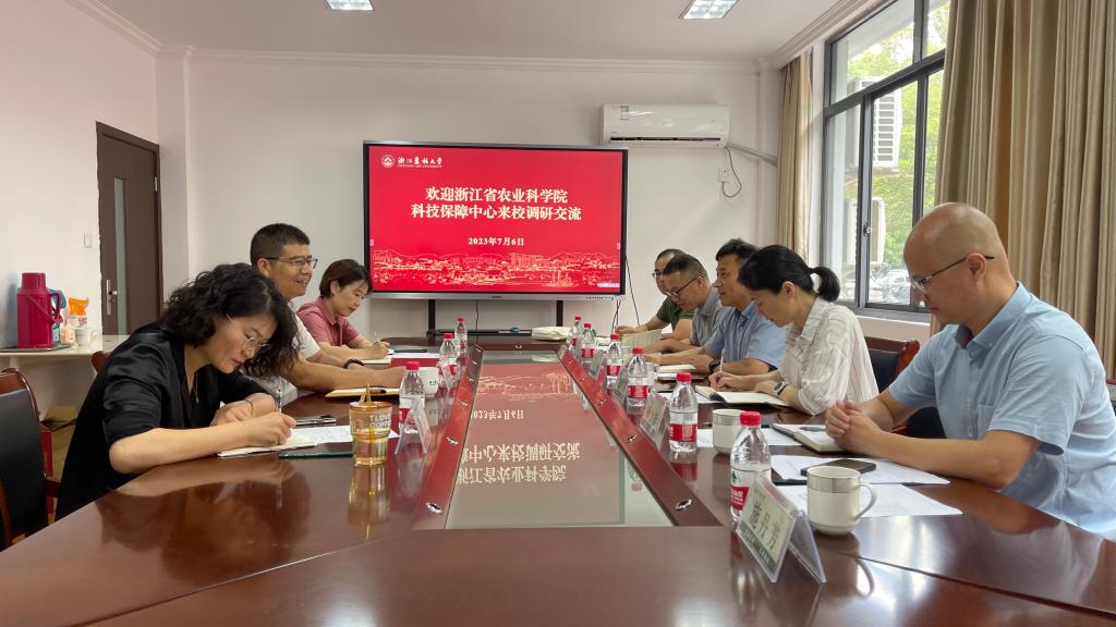 7月6日,浙江省农业科学院科技保障中心党总支书记、主任金李杰一行来校调研交流。公管处处长陈培金主持座谈交流会,公管处、信息中心相关负责人陪同交流。