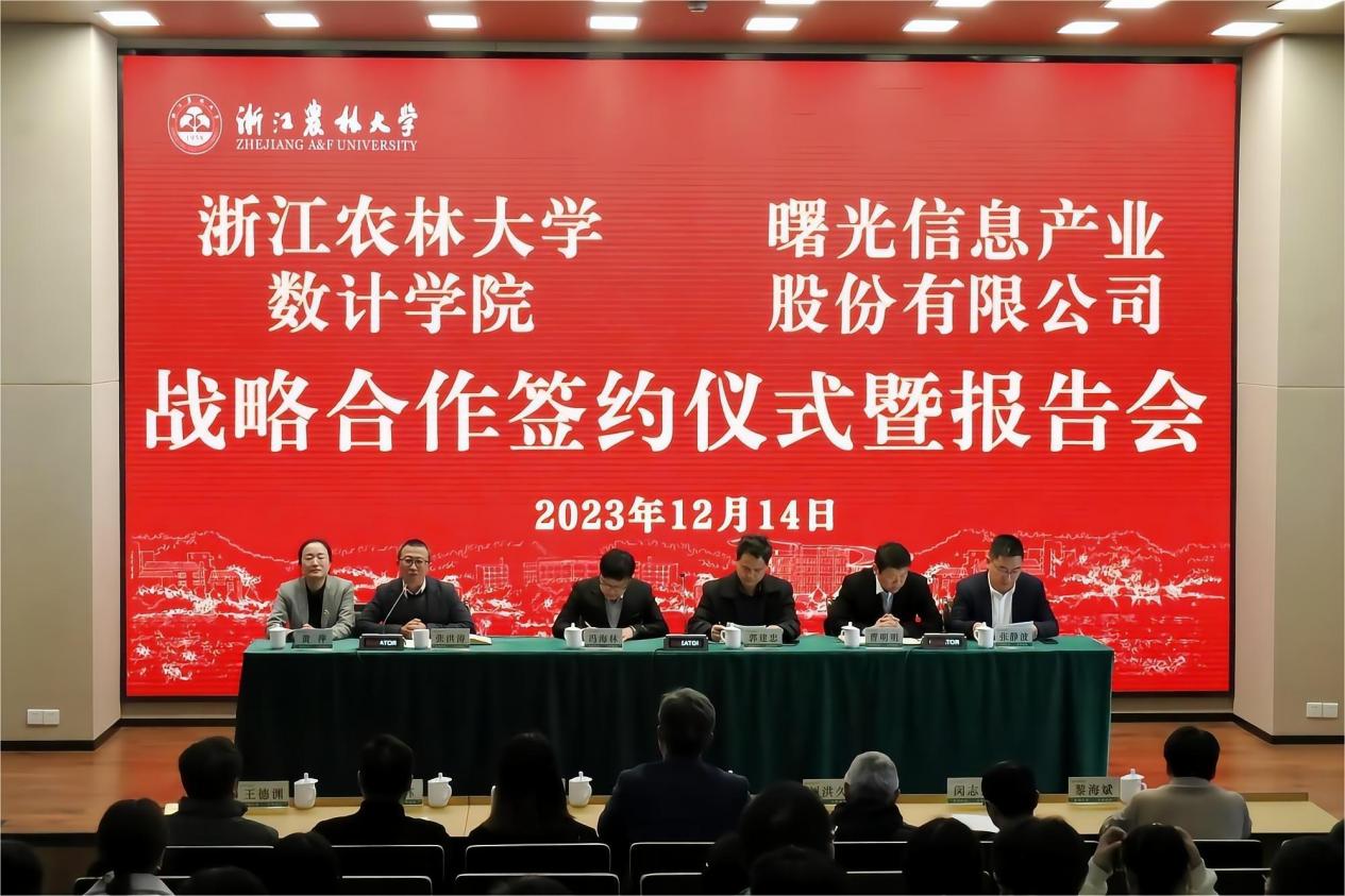 12月14日,数计学院与曙光信息产业股份有限公司战略合作签约仪式在学三国际报告厅举行。中科曙光副总经理曹明明等中科曙光高管10人,我校教务处处长郭建忠,数计学院党政领导班子、现代农林人工智能产业学院相关负责人出席签约仪式。
