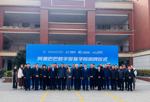 阿里巴巴网络技术有限公司、商学院、浙江中渤教育科技有限公司三方签订了共建阿里巴巴数字贸易学院协议。杭州市委党校副校长、二级巡视员廖志林,暨阳学院院长徐光辉,暨阳学院党委书记洪昀,阿里巴巴网络技术有限公司代表,诸暨市商务局党组书记姚勇琪,中渤教育科技有限公司总经理茹宝共同为数字贸易学院揭牌。
