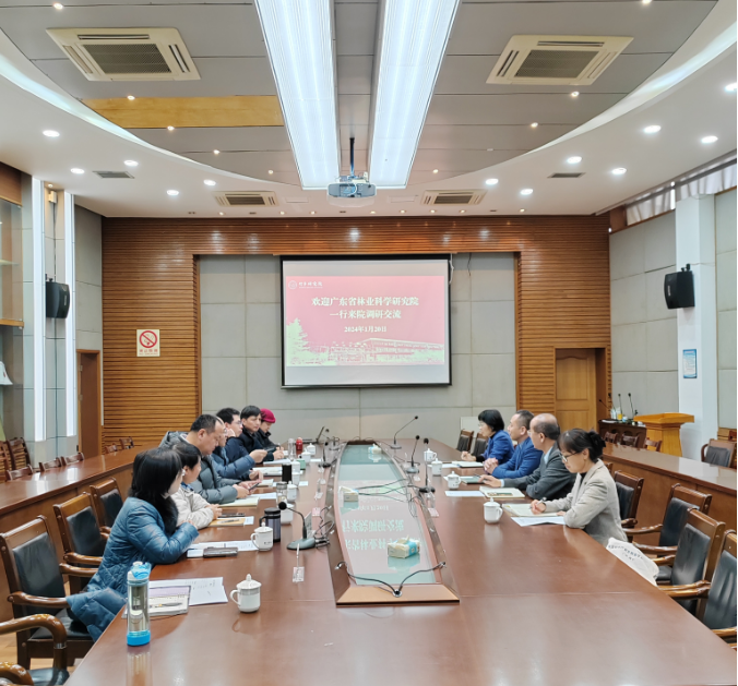 1月20日上午,广东省林业云开体彩下载官网院院长龙永彬等一行来竹子研究院调研交流。座谈交流会由竹子研究院党总支书记周能寿主持。