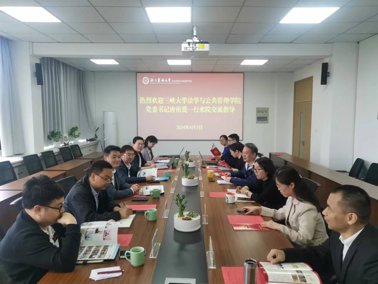 4月3日上午,三峡大学法学与公共管理学院党委书记唐祖爱一行,来文法学院调研交流。文法学院党委书记朱红东等,以及相关学科部门代表参加交流。