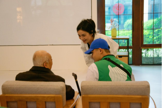 部分志愿者陪伴在长者们身侧,和他们亲切交谈,关心地询问长者们的生活情况,耐心倾听长者们的故事和心声,现场氛围融洽而温馨。