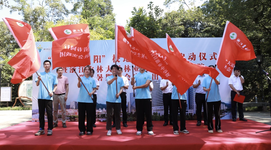 出席仪式的领导为“六大专家团队”代表授牌,并为暑期社会实践队伍授旗。