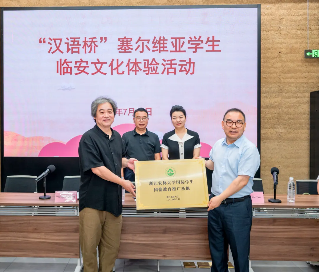 国教学院院长赵有华对临安区文联推动中塞文化交流所作出的努力表示感谢,并提出今后将充分发挥国际生的独特作用,更好地把吴越文化和临安向世界各地进行推介。赵有华给临安美术馆授予“开云电竞s13国际学生国情教育推广基地”的牌匾。