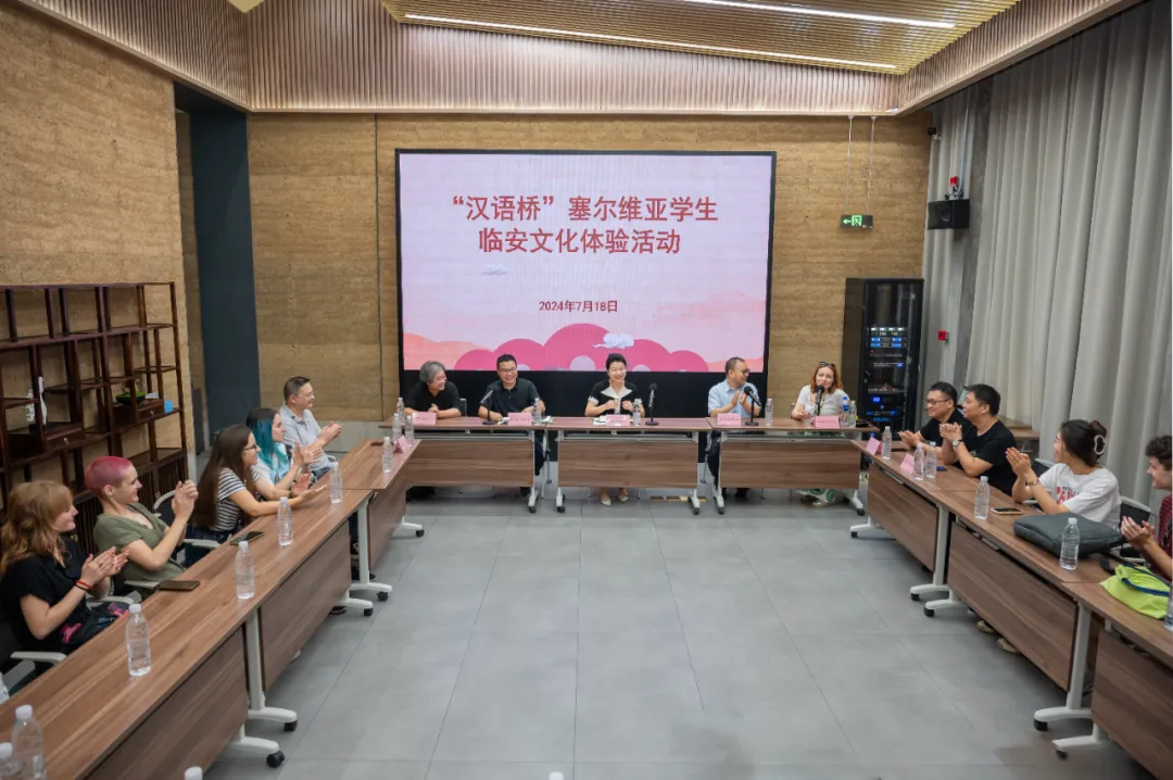 临安区文联党组书记、主席徐冠玉发表了热情洋溢的欢迎辞。她向塞尔维亚师生介绍了临安地理环境、生态优势和吴越文化,并对师生的到来表示了热烈的欢迎,希望他们通过这次体验活动,更加直观地感受到中国文化和吴越文化的独特魅力。