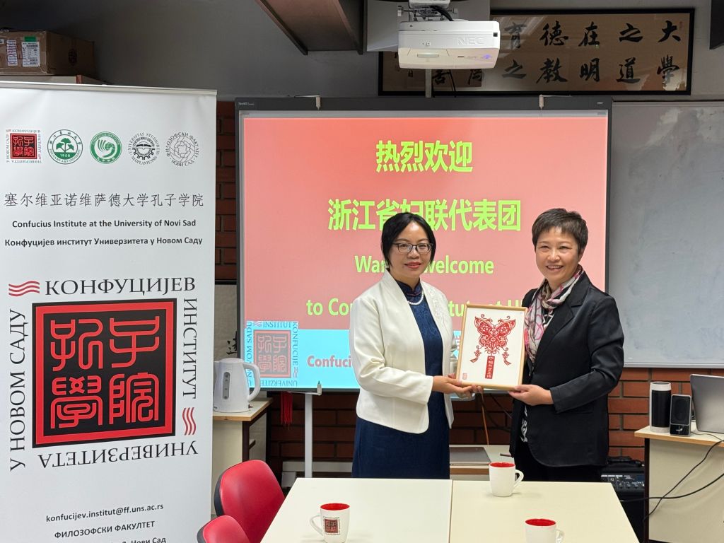 当地时间10月24日,浙江省妇女联合会党组书记、主席何杏仁率代表团访问诺维萨德大学孔子学院。中方院长陈秀及孔院教师代表参加座谈交流。