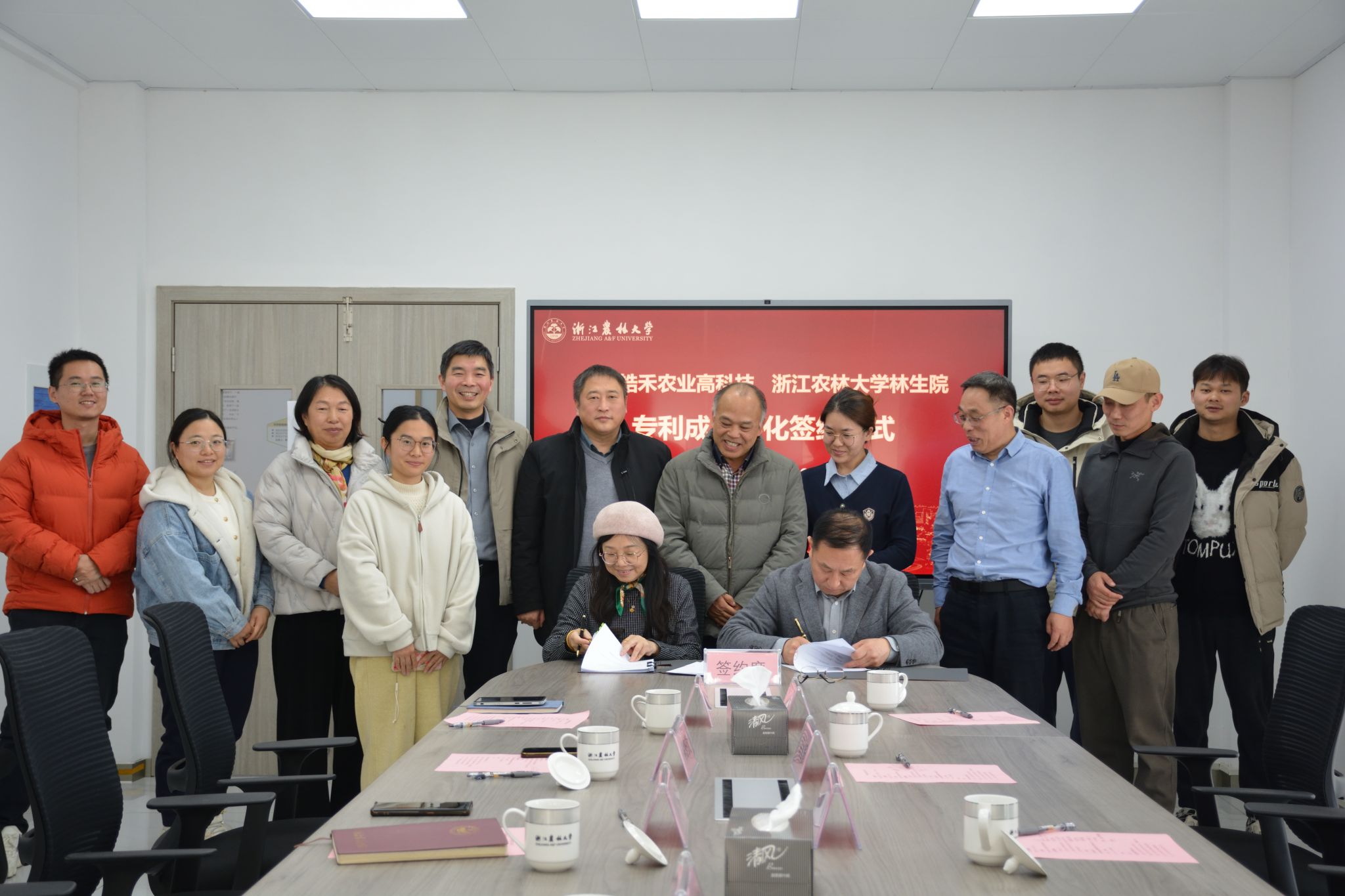 12月20日,林生院与辽宁皓禾农业高科技有限公司签署专利成果转化协议。辽宁皓禾农业高科技有限公司董事长吴元华、技术部经理刘鹤、孙行正,我校合作处处长刘兴泉、林生院林学学科负责人黄坚钦、以及林生院相关负责人等出席签约仪式。