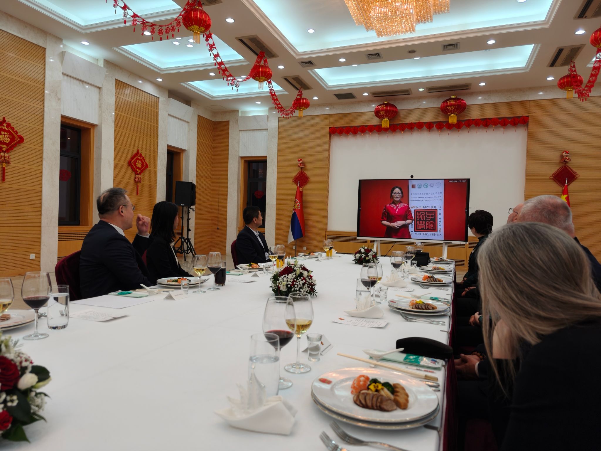 春节前夕,诺维萨德大学孔子学院中外方院长受邀参加驻塞尔维亚大使馆举办的中文教学座谈会。中国驻塞尔维亚大使李明、教育参赞袁纪纲及塞尔维亚4家中文教育机构负责人参加了此次座谈交流会。