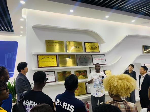 临安跨境电商园区负责人热烈欢迎广大国际生来交流,并特邀我校毕业生——杭州工求贸易有限公司总经理王志(加纳籍)详细介绍了园区发展历程、运营模式及产业生态,重点展示了跨境电商孵化平台、众创空间及企业服务系统等。国际生们实地参观了园区展厅,深入了解了临安跨境电商在资源整合、政策扶持及人才培育方面的创新举措,成功就业的往届毕业国际生代表肯尼(赞比亚籍)结合实习经验分享了对跨境电商行业的思考,现场互动交流氛围热烈。