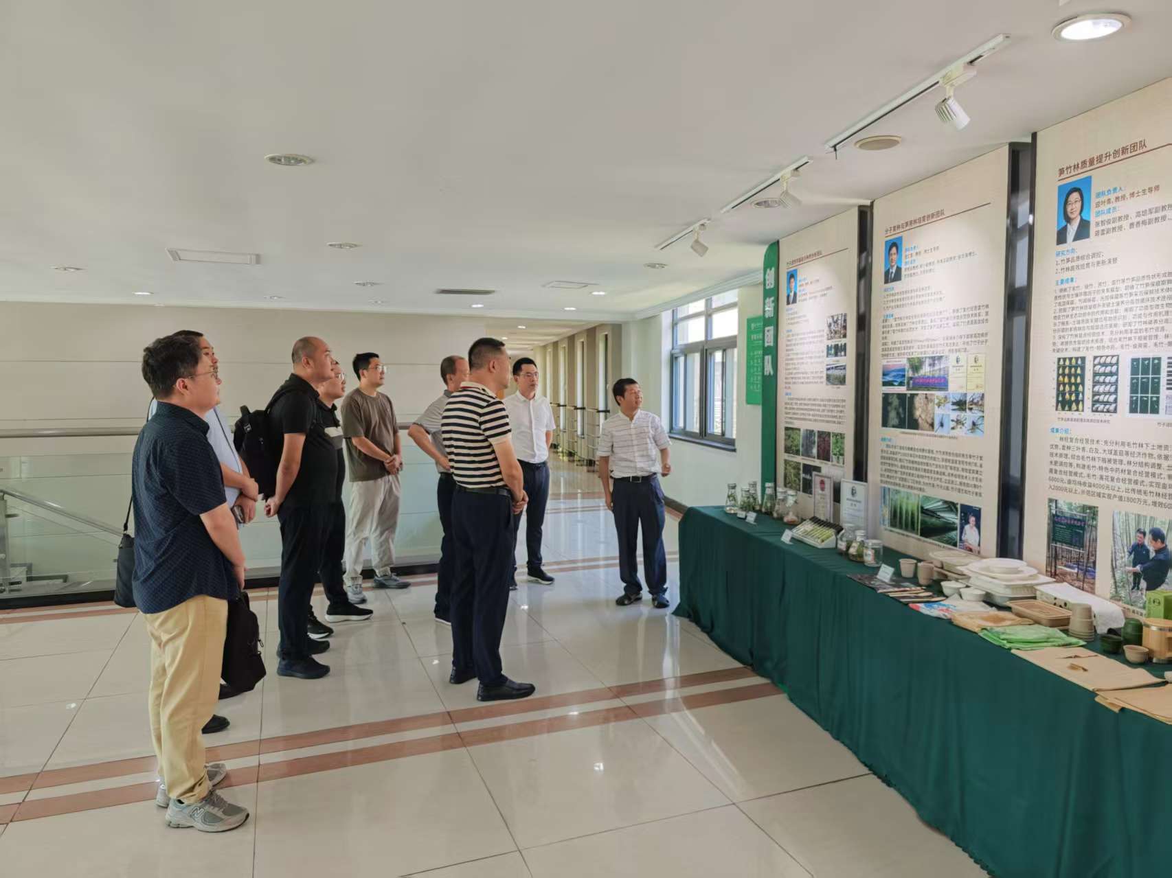 调研期间,陈本文一行还参观了竹子研究院成果展、竹韵棠、实验室等。