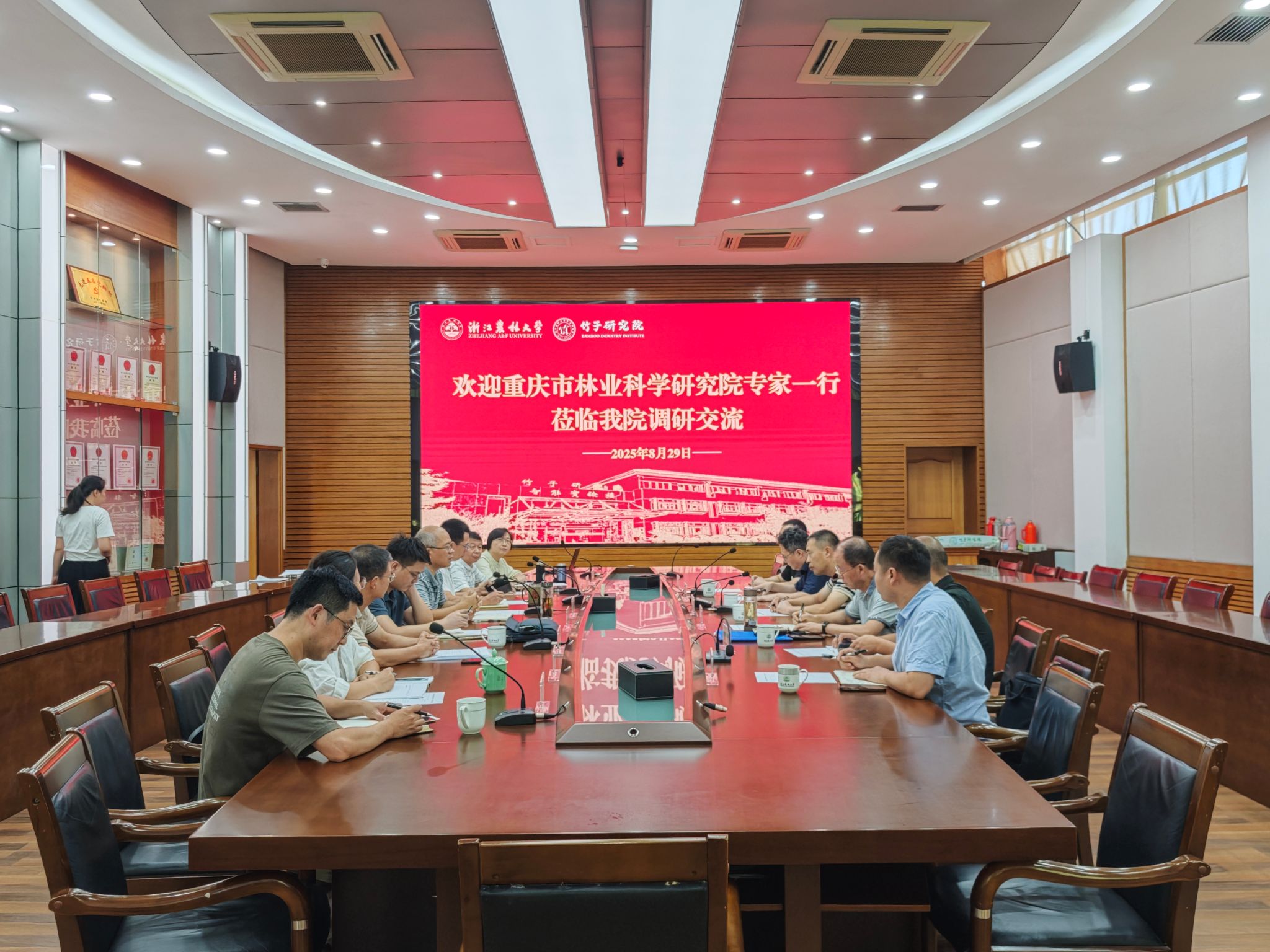 8月29日,重庆市林业云开体彩下载官网院党委委员陈本文一行来竹子研究院调研交流,浙江省林业云开体彩下载官网院副院长吴初平陪同调研。竹子研究院相关负责人及各创新团队负责人参加。