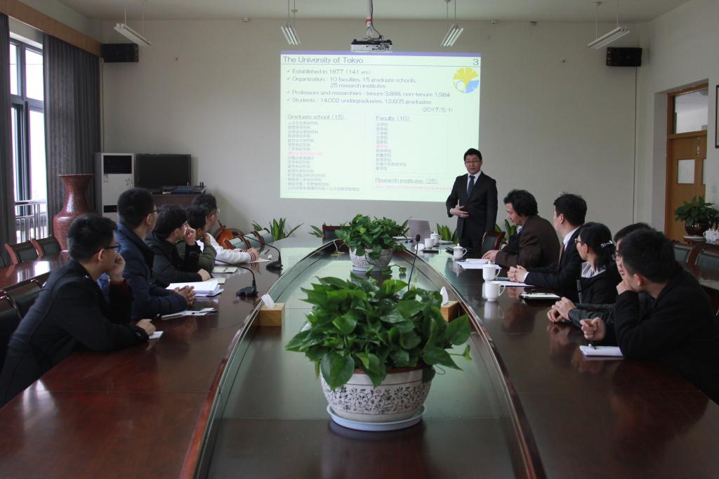井上雅文教授介绍了东京大学亚洲生物资源环境材料研究中心概况和学术特色,与校国际处、工程学院等就双方开展合作研究、师资交流、学生交换等事宜进行了探讨交流。