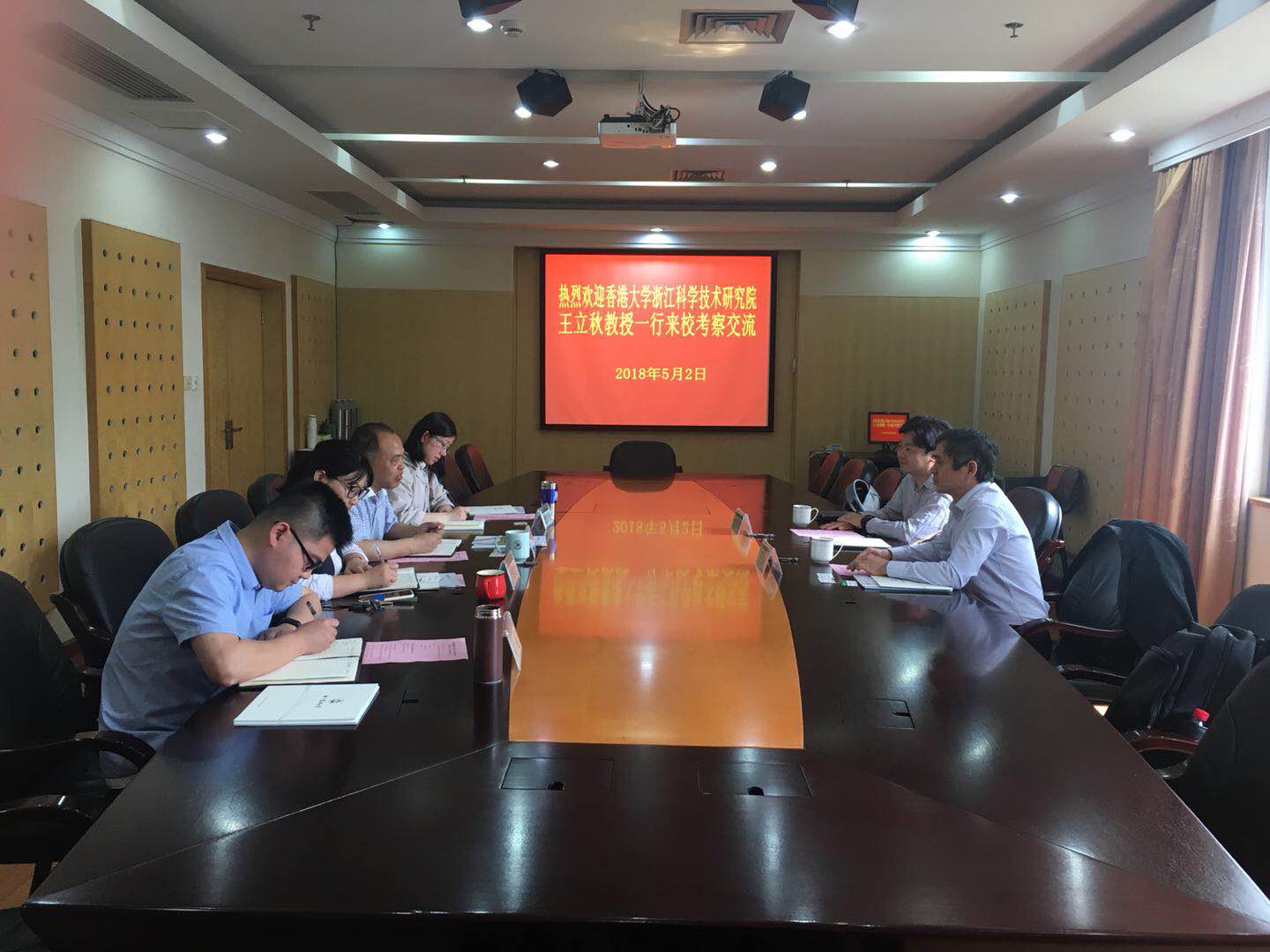 黄坚钦介绍了学校历史沿革、学科建设和研究生教育工作情况。王立秋介绍了香港大学浙江科学技术研究院概况、单位组织和人员架构,详细介绍了研究院的功能定位、发展需求,希望研究院与学校加强联系,构建合作机制,实现共赢。