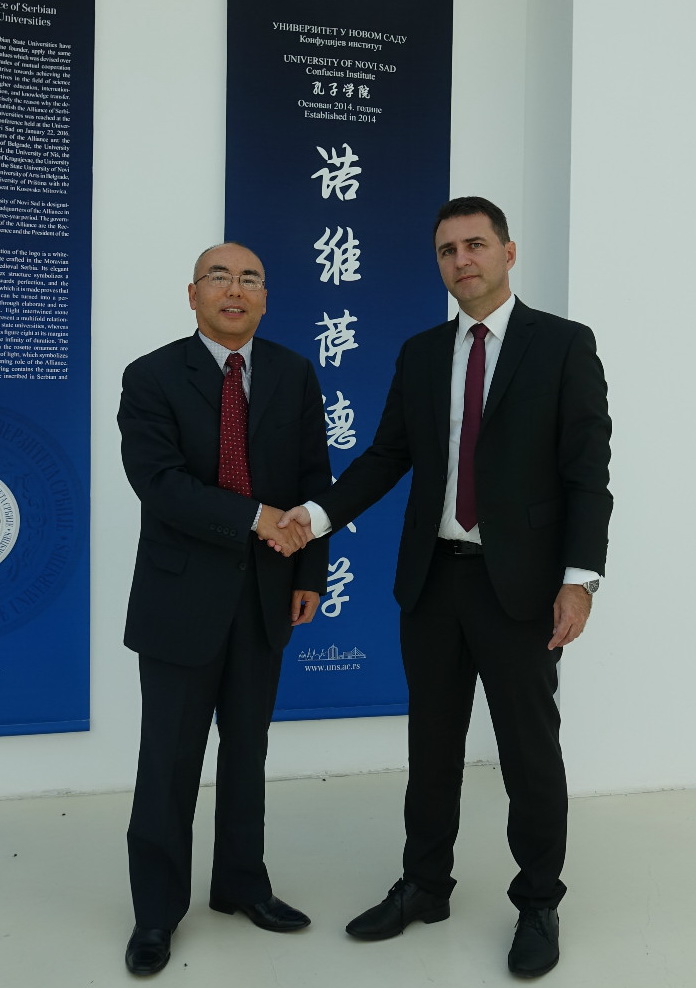 近日,塞尔维亚诺维萨德大学新任校长德扬•亚克西奇教授(Dejan Jakšić)在校长会议室会见诺大孔子学院中方院长陈晦及部分汉语教师,并就继续推进汉语教学及开展中塞教育文化交流工作进行座谈。