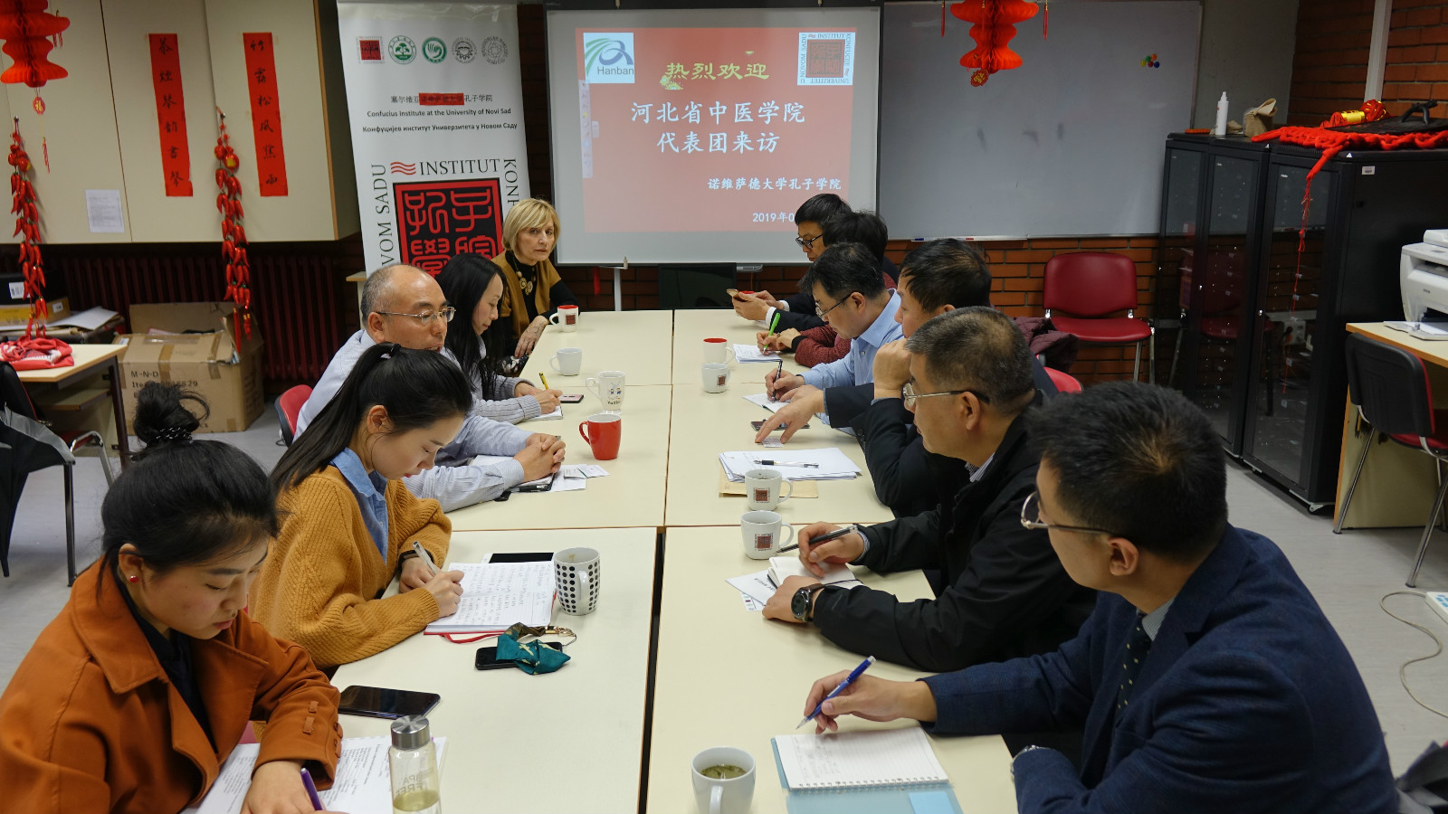 当地时间3月11日,河北中医学院代表团一行6人访问塞尔维亚诺维萨德大学孔子学院。塞尔维亚伏伊伏丁那省政府助理秘书斯内扎娜•博扬尼克(Snezana Bojanic)博士及诺大孔院中方院长陈晦参加本次交流。