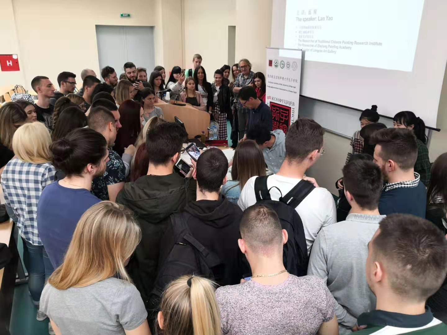 近日,诺维萨德大学孔子学院在塞尔维亚首都贝尔格莱德及南部城市沙巴茨举办中国写意画讲座及展示活动。来自中国浙江的著名画家徐锋、蓝耀为汉语课程学生和当地民众带来了如何欣赏写意中国画的讲座、写意中国画现场创作展示,并现场指导学生进行中国写意画创作。活动分别在诺大孔院合作教学点麦加特伦德大学(Megatrend University)、辛格顿那大学(Singidunum University)和沙巴茨高中(SabacHigh School)举行。中国驻塞尔维亚大使馆文化参赞崔英兰出席了麦加特伦德大学的活动。