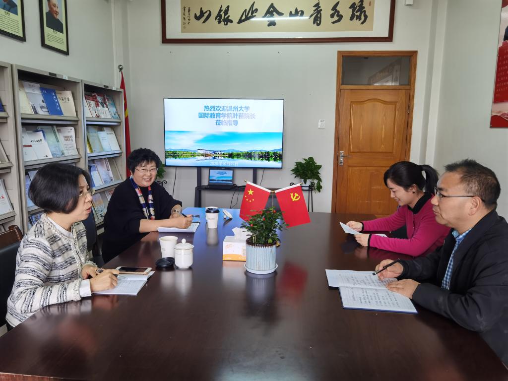 10月22日上午,温州大学国际教育学院院长叶苗一行来校调研交流,国际教育学院院长赵有华等相关负责人参加了座谈交流。
